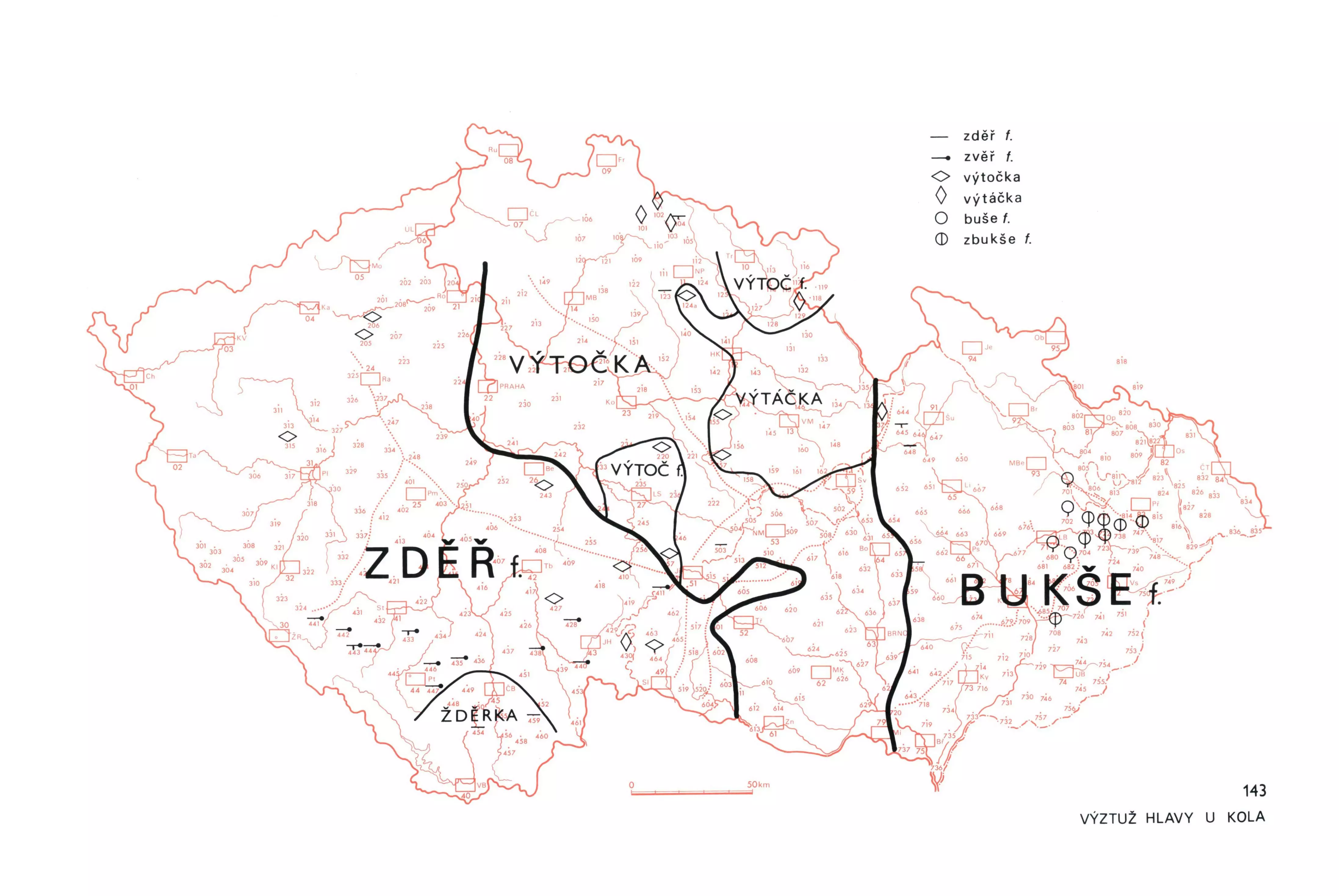 3 Na mapě vystupuje výrazná lexikální trichotomie názvů zděř, výtočka a bukše. Hranice areálů jsou ostré.