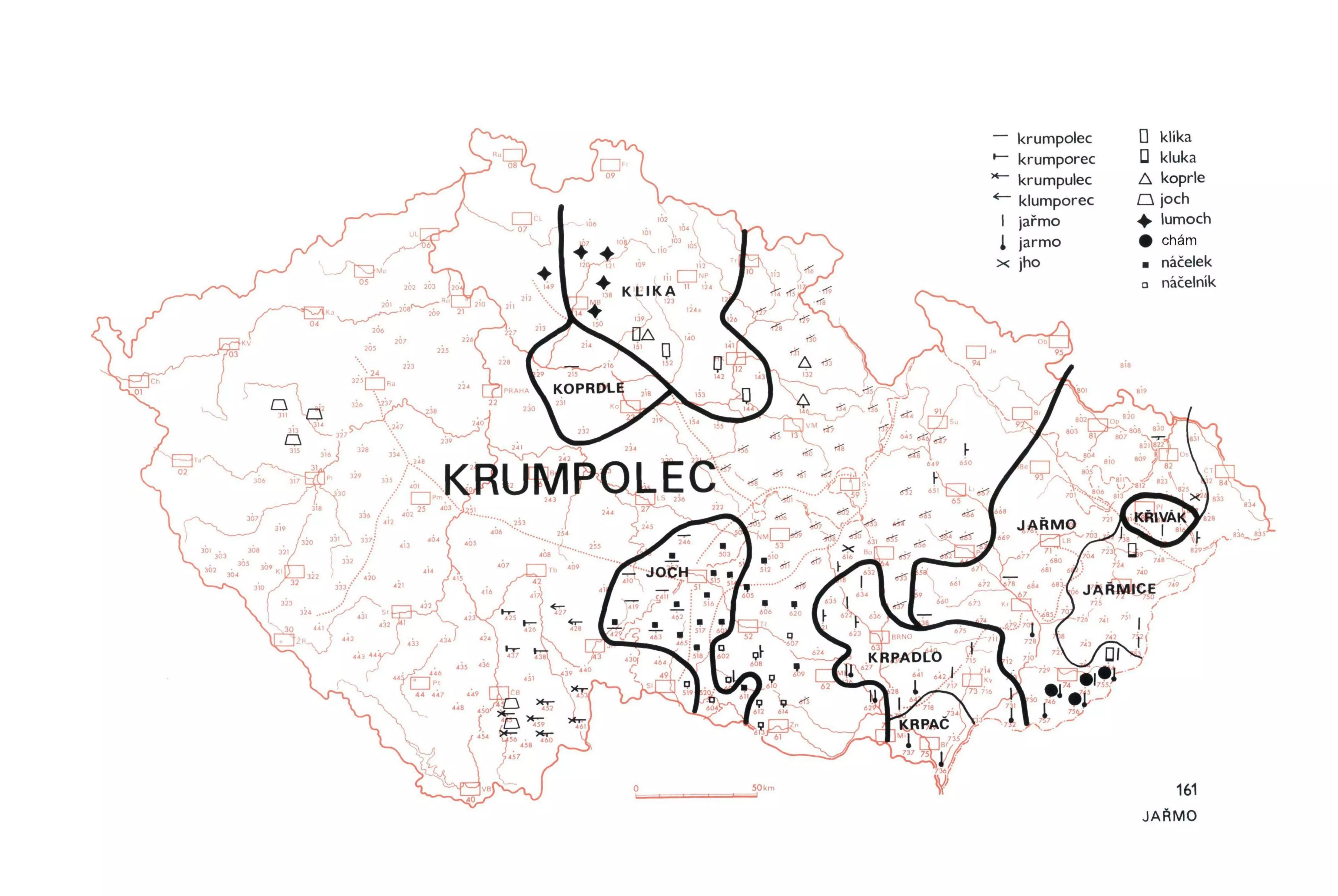 3 Největší územní rozšíření má slovo krumpolec. Zabírá téměř celou oblast jzč. a střč. nářečí (na již.