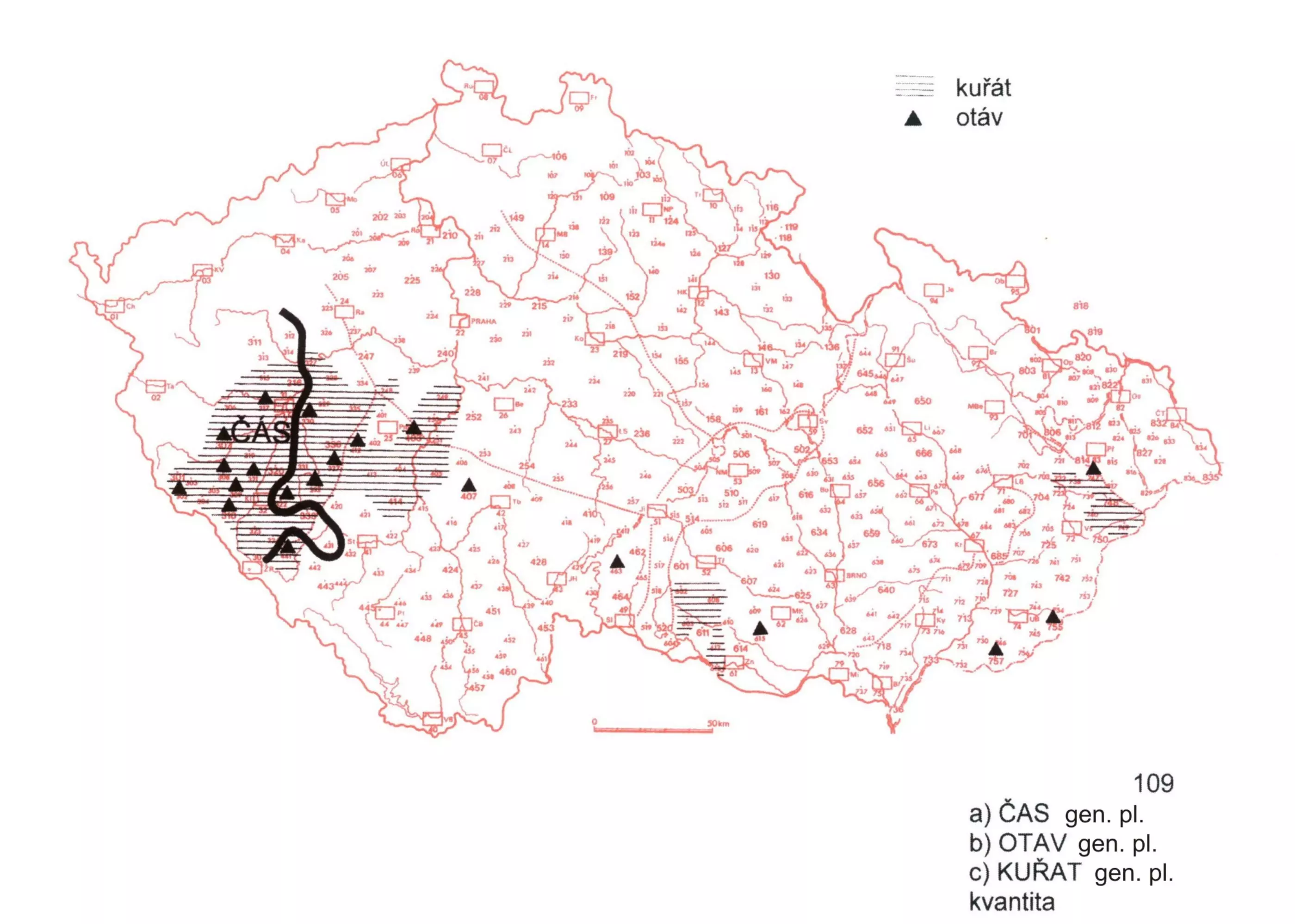 3 Jádro výskytu všech tří zobrazených forem je v záp. Čechách. Forma čás pokrývá kompaktní areál na záp. okraji Čech až po Plzeň a Klatovy, od Klatov pak vybíhá na záp. Strakonicko.