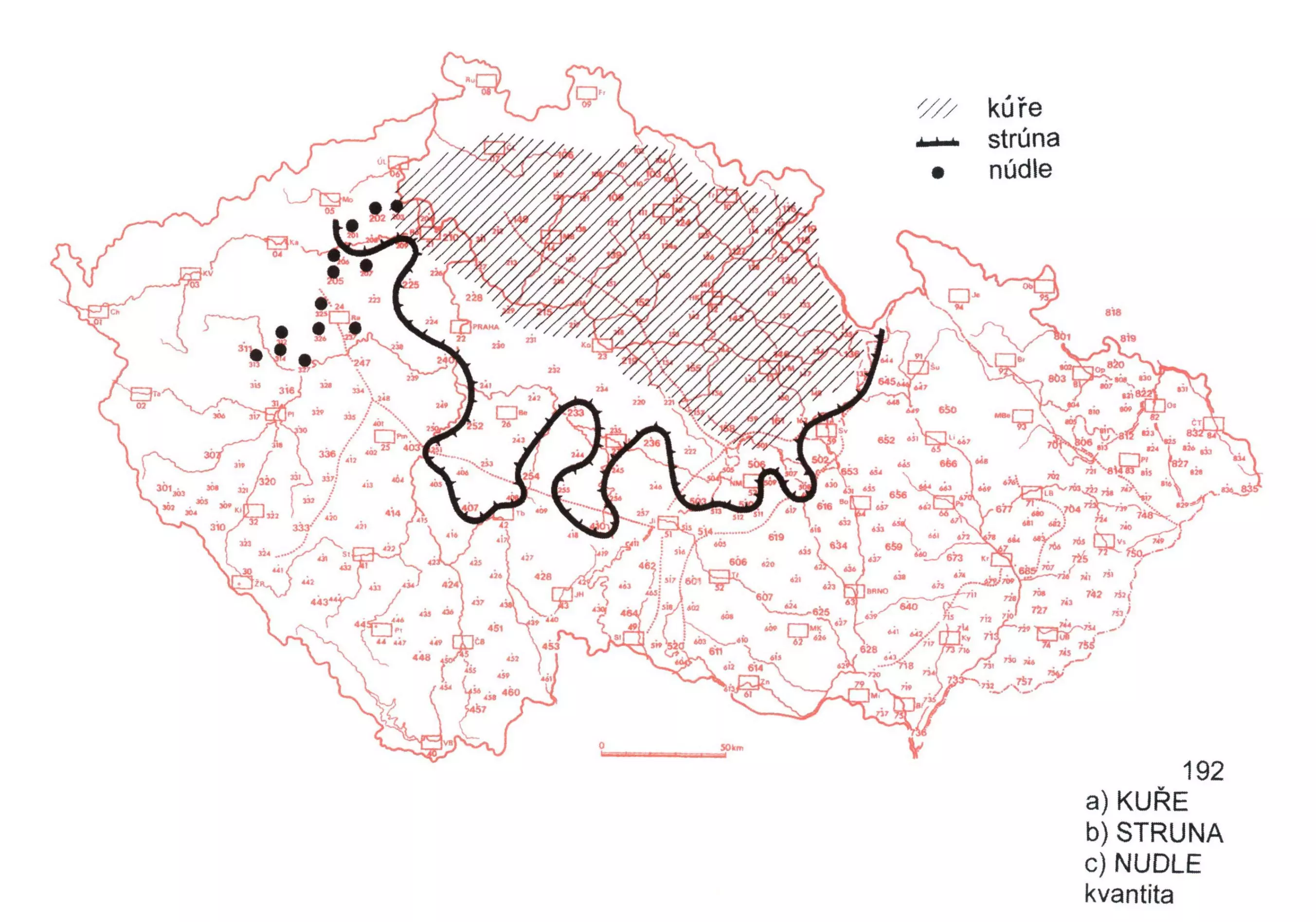 Obměna núdle se dokládá pouze ze sz. okraje Čech (zhruba z Rakovnicka a dolního Poohří).