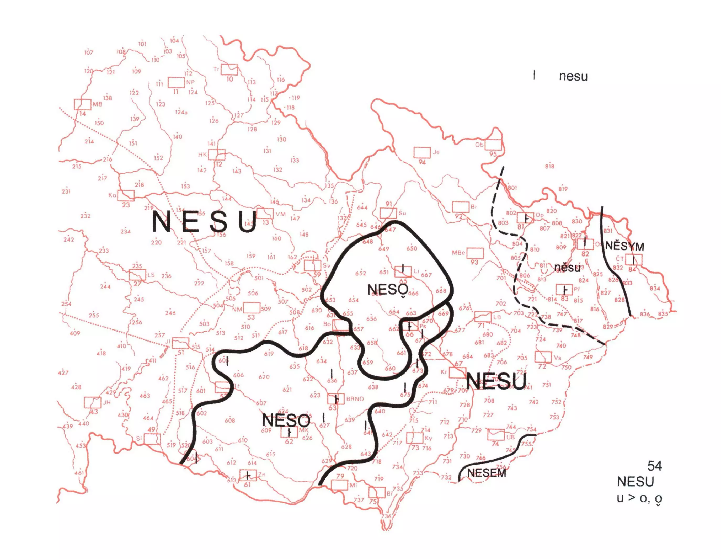 7 Změna i > , e proběhla také ve slově lípa. Ve spis. jazyce a v Čechách má slovo podobu lípa, na Moravě obměna lipa zachovává moravskou krátkost. Obměny lepa, lpa jsou omezeny na centrální úsek střm. nář. a území sousedící s tímto úsekem.